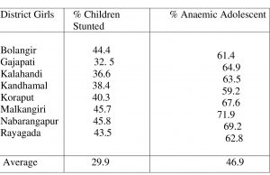 Adolescence is a period of rapid physical growth and sexual maturation. The onset of monsoon signal increases the daily requirement of iron to replace blood loss. In case of tribals, their diets lack diversity as they rely on monotonous cereal based diet that is low in iron & Vitamin C, which is essential for iron absorption. To complicate matters, they are afflicted by genetic factors like high presence of Sickle Cell disease. In case of Bolangir & Kalahandi, many carry sickle cell traits, where standard iron tablets do not cure this type of anaemia. Districts like Koraput & Malkangiri suffer from 70% anaemia due to high malarial endemicity.